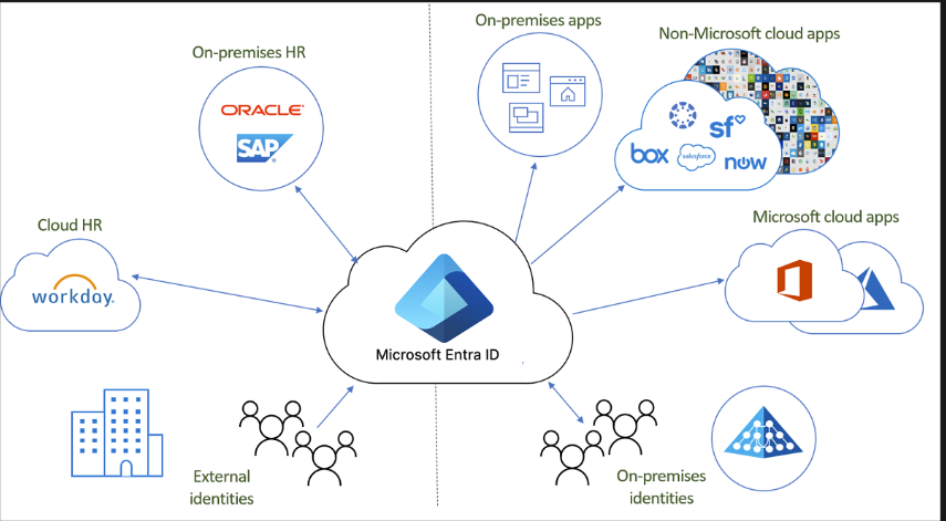 Muitas organizações operam em ambientes híbridos, utilizando tanto serviços em nuvem quanto on-premises. O Entra ID facilita a integração dessas identidades, permitindo que usuários acessem recursos em ambas as configurações sem problemas.